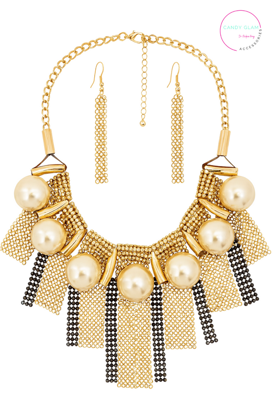 Chazelle Oversized Pearl Rhinestone Mesh Luxe Glam Set